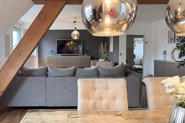 Die Wohnung ist in allen Wohnräumen mit einem hochwertigen Vinylboden in Eichenoptik ausgestattet, das Badezimmer präsentiert sich modern und geschmackvoll gefliest. Wohnzimmer, Bad und Küche verfügen über eine Fußbodenheizung, die bequem per App steuerbar ist. In den vergangenen Jahren wurde die Wohnung fortlaufend renoviert und modernisiert: Teilweise wurden Fenster durch 3-fach verglaste Elemente ersetzt, die Dachfenster erneuert und mit elektrisch steuerbaren Velux-Rollos ausgestattet. Die ALNO-Einbauküche inklusive neuer Elektrogeräte ist im Kaufpreis enthalten.